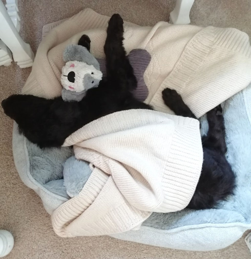 This is Bear. A Poodle, Collie, lurcher, deerhound patchwork puppy. ! He is 9 weeks old and absolutely lovely.